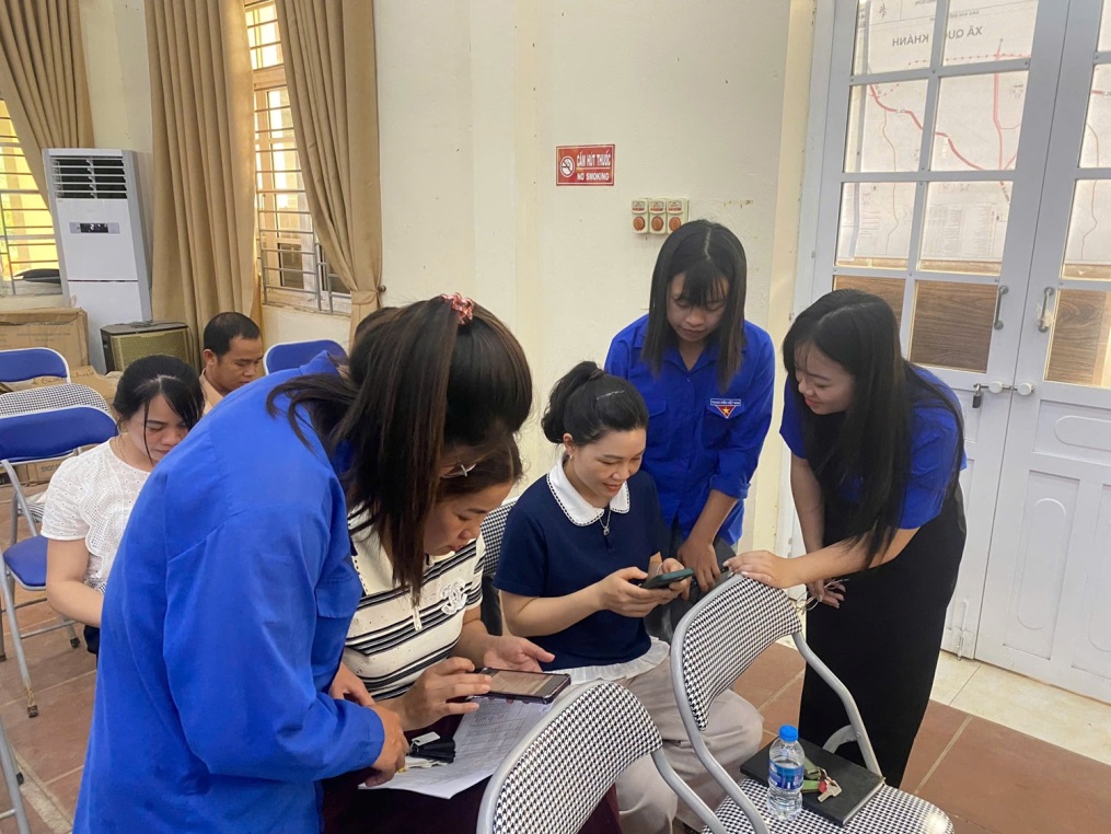 Cán bộ Công an tỉnh, chi nhánh Ngân hàng thương mại trên địa bàn tỉnh và lực lượng đoàn viên thanh niên trực tiếp hỗ trợ cho người dân