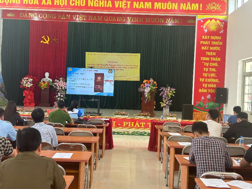 Báo cáo viên chia sẻ nội dung tại Hội nghị tập huấn