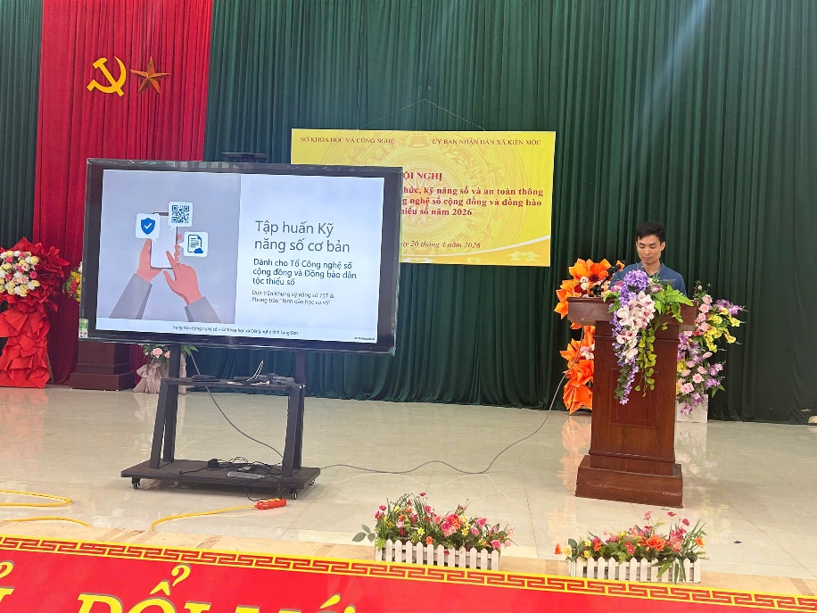 Hội nghị tập huấn, cập nhật kiến thức kỹ năng số và an toàn thông tin cho thành viên Tổ công nghệ số cộng đồng và đồng bào dân tộc thiểu số năm 2026 tại xã Kiên Mộc và xã Thống Nhất
