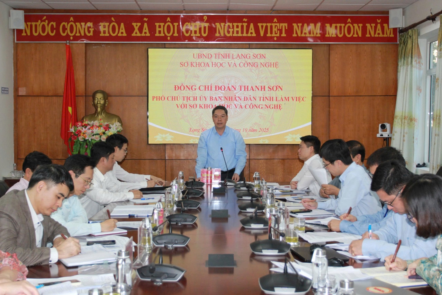Ngày 28/10/2025, Đoàn công tác của UBND tỉnh do đồng chí Đoàn Thanh Sơn, Phó Chủ tịch UBND tỉnh làm trưởng đoàn đã có buổi làm việc với sở Khoa học và Công nghệ (KHCN) về tình hình triển khai, thực hiện nhiệm vụ 10 tháng đầu năm và nhiệm vụ, giải pháp những tháng cuối năm 2025.