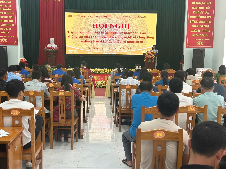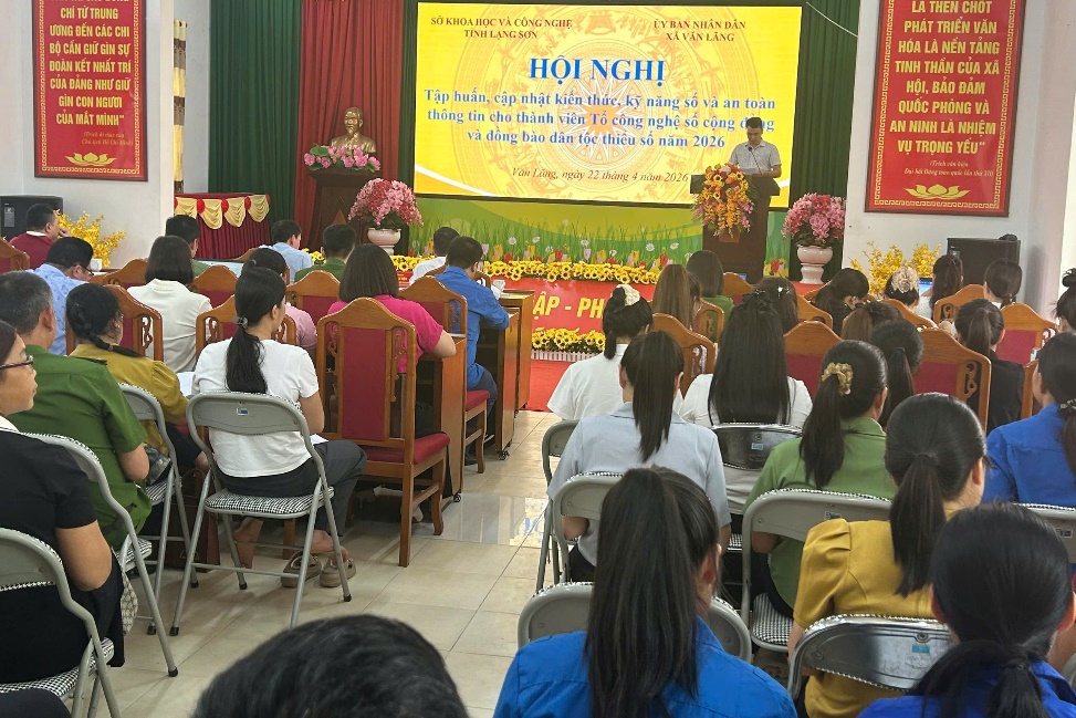 Trong hai ngày 21-22/4/2026, Trung tâm Công nghệ số - Sở Khoa học và Công nghệ phối hợp với UBND các xã Thiện Long, Hội Hoan, Văn Lãng tổ chức Hội nghị tập huấn, cập nhật kiến thức, kỹ năng số và an toàn thông tin cho thành viên Tổ công nghệ số cộng đồng và đồng bào dân tộc thiểu số năm 2026. Hội nghị thu hút hơn 400 đại biểu tham dự là cán bộ phụ trách chuyển đổi số, thành viên Tổ Công nghệ số cộng đồng và người dân tại các xã.