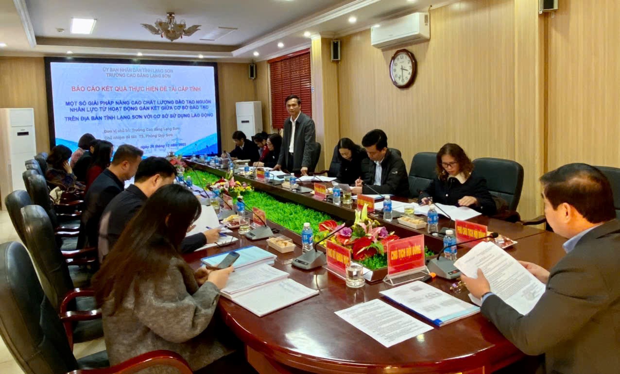 Ngày 26/12/2025, tại Sở Khoa học và Công nghệ tỉnh Lạng Sơn, Hội đồng khoa học và công nghệ cấp tỉnh được thành lập theo Quyết định số 2722/QĐ-UBND ngày 18 tháng 12 năm 2025 của UBND tỉnh Lạng Sơn đã tiến hành họp tư vấn, đánh giá và nghiệm thu kết quả thực hiện đề tài khoa học “Một số giải pháp nâng cao chất lượng đào tạo nguồn nhân lực từ hoạt động gắn kết giữa cơ sở đào tạo trên địa bàn tỉnh Lạng Sơn với cơ sở sử dụng lao động”, do Trường Cao đẳng Sư phạm Lạng Sơn, nay là Trường Cao đẳng Lạng Sơn là cơ quan chủ trì.